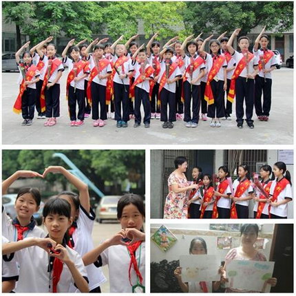 501中队的全体队员在大队辅导员纪老师的带领下在操场摆开了“Love”和“9·10”的字样,拍出了生动活泼的相片;四、五年级的队员们纷纷与家长手写祝福语并进行合照,用环保时尚的方式传递祝福给老师。